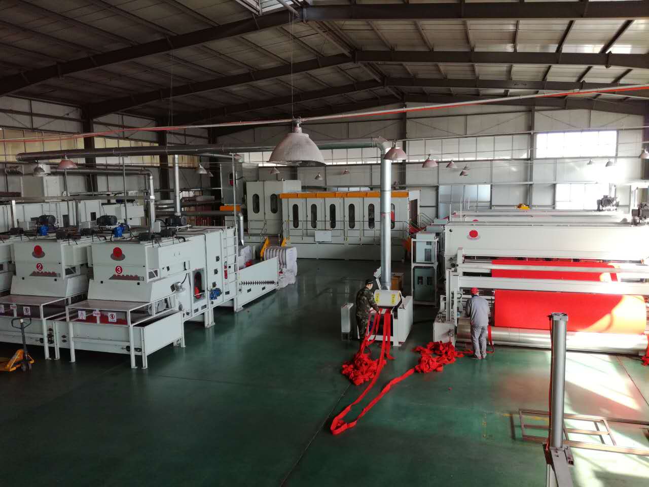 公司總投資1億余元,首期工程已完成投資3000萬(wàn)元,F(xiàn)已建設(shè)標(biāo)準(zhǔn)廠房15000余平方米、引進(jìn)多條無(wú)紡布生產(chǎn)線。其中,針刺無(wú)紡線4條、起絨機(jī)兩臺(tái)、電腦提花機(jī)1臺(tái)、條紋機(jī)1臺(tái)、地毯整理烘干定型線兩套。
